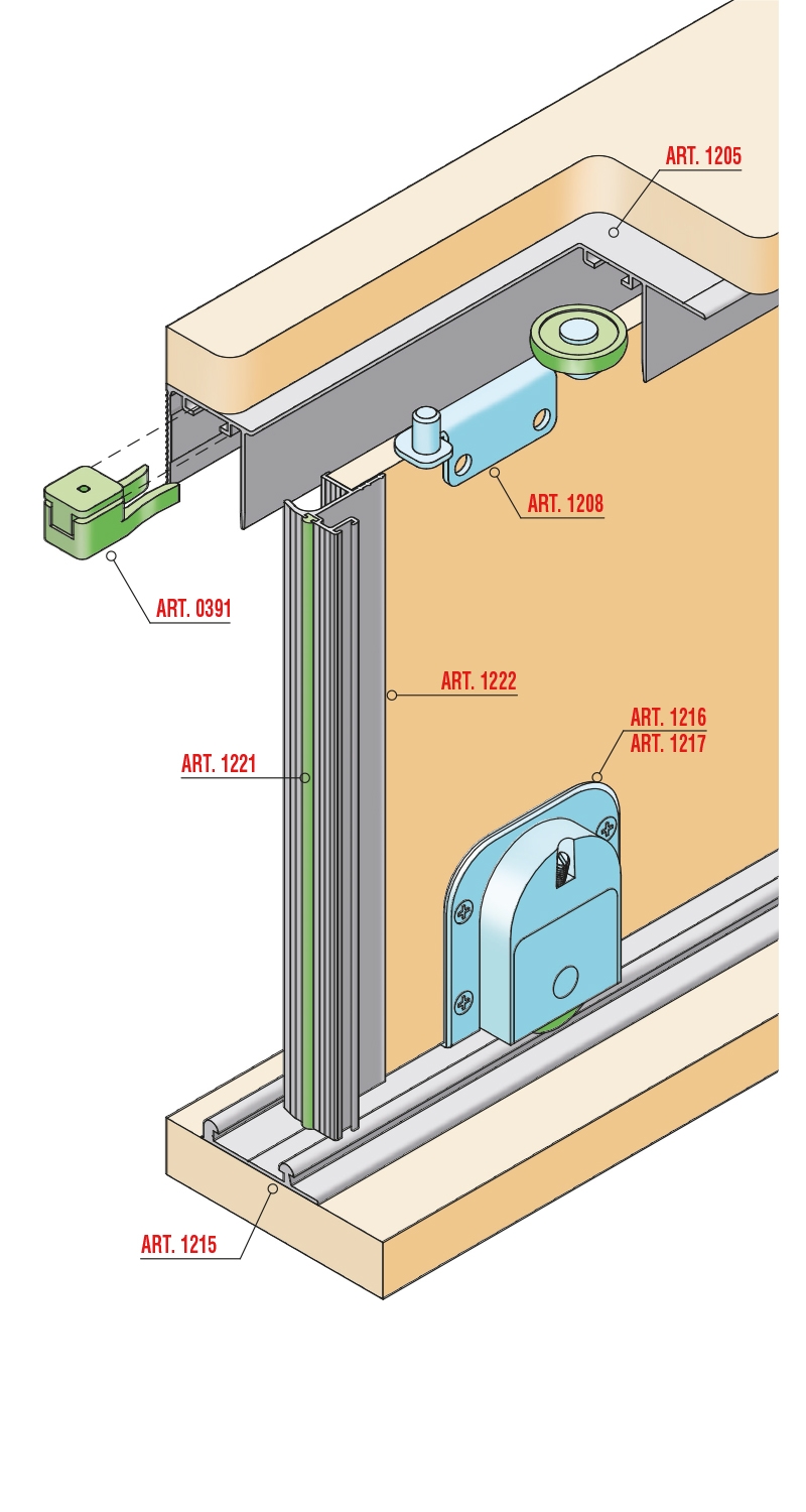 Sistema scorrevole ad ante sovrapposte per armadi Sistema regolabile
